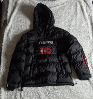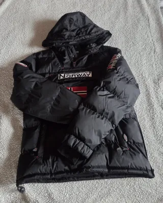 Chaqueta Geographical Norway de color negro. Presenta un diseño acolchado y capucha. Está en perfecto estado, usada muy pocas veces. - Cierre de cremallera parcial.