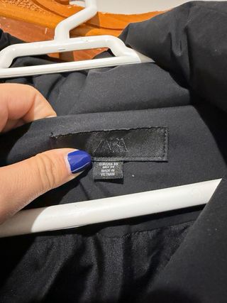 Anorak largo de Zara en color negro. Diseño acolchado con cuello alto. - Cierre de cremallera. - Bolsillos laterales.