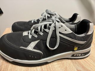 Calzado de seguridad FTG Sport con un diseño moderno y funcional. - Combinación de colores negro y gris. - Materiales resistentes para protección. - Estilo deportivo y cómodo.