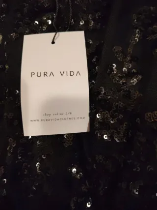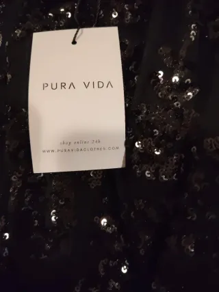 Vestido de fiesta con un diseño elegante y llamativo. - Detalle de lentejuelas brillantes. - Color negro con toques plateados.