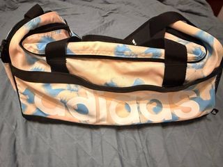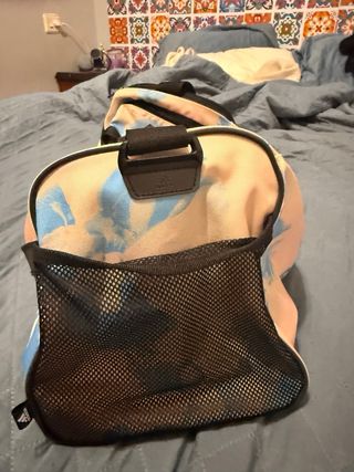 Práctica bolsa de deporte Adidas con un diseño llamativo. - Estampado floral en tonos pastel. - Logo de Adidas en grande en el frontal.
