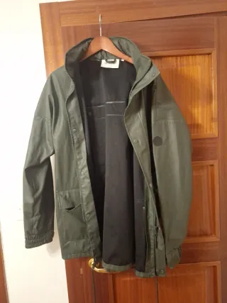 Parka impermeable de la marca Anerkjendt en color verde. Ideal para protegerse de la lluvia. - Cierre de cremallera y botones a presión. - Bolsillos frontales con solapa. - Capucha integrada. - Puños ajustables.