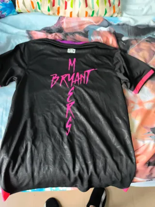 Camiseta negra con diseño especial de Bryant Myers y el PSG. - Cuello y mangas con detalles en degradado rosa y morado. - Logo del PSG y de Nike en la parte frontal. - Estampado gráfico llamativo en color rosa neón. Está en perfecto estado y es muy bonita y tiene una calidad increíble