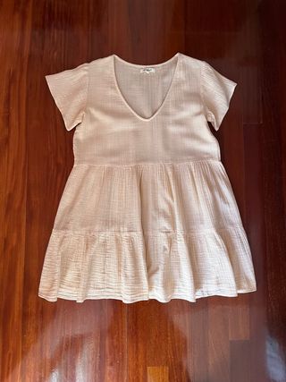 📌 Vestido Tintoretto de gasa rosa palo con detalles en tonos bronce. 📌 Impecable. 1 sólo uso. 📌 Forrado. 📌 Talla 38/M (38 cms de hombros, 43 cms entre axilas y 93 cms de largo).