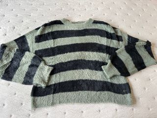 Jersey de Pull&Bear, talla S, con tejido tipo pelo / fluffy, muy suave y calentito. Diseño de rayas verde y negro, cómodo y original, ideal para otoño e invierno. 🧶 Tejido suave efecto pelo 👚 En buen estado 🚚 Envío rápido