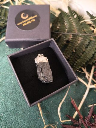 La turmalina negra es una de las piedras más utilizadas para crear un escudo protector, ayudando a neutralizar influencias negativas y a mantener el equilibrio energético. Al tratarse de una piedra en bruto, cada colgante es único, pudiendo variar ligeramente el tamaño, la forma y el grosor respecto a la imagen mostrada. ✨ Características principales: • Colgante de Turmalina Negra natural en bruto • Engarce con baño de plata • Piedra en bruto: cada pieza es única • Puede variar ligeramente en tamaño y grosor • Asociado a protección y enraizamiento Un colgante potente y auténtico para quienes buscan una protección energética natura