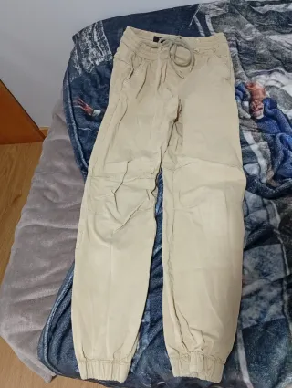 Pantalones de estilo cargo en color beige. - Cintura elástica con cordón. - Bolsillos laterales. - Puños ajustados en los tobillos.