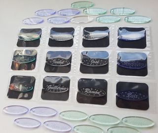 Marcasitios personalizados con nombres. Bodas, cumpleaños, bautizos, eventos o detalles, tus invitados los podrán usar como llaveros y así siempre lo recordarán. -Hechos de metacrilato transparente de 5mm de grosor, lo que les da una gran resistencia. -Grabado láser, no se borran. -Decoración de estrellas o corazones. -Elige entre incoloro, tono verde o tono morado. -5 tipografías a elegir: Harrington, Gainsborough, Freestyle, Brush y Gabriola. Combina decoración, color y tipografía como quieras. Precio por unidad. Envío a España península por 5,50 euros. Diseño y fabricación propia. No se incluyen anillas. Facebook: NoSoloLetras