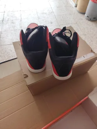 Puestas 1 vez me viene pequeñas Zapatillas de caña alta con un diseño moderno y llamativo. - Combinación de colores negro y rojo. - Cierre con cordones negros. - Detalle de corte en la zona del tobillo.