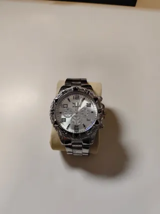 Elegante reloj de pulsera con un diseño moderno y sofisticado. El reloj no se a usado ni una vez, no es de plata, da la hora perfectamente, cualquier duda siempre podéis preguntarme! - Correa de metal. - Esfera con detalles. - Bisel con diseño.