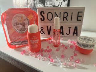 Set de cuidado corporal de Sol de Janeiro. - Incluye un gel de ducha. - Incluye una crema corporal. - Incluye un spray corporal.