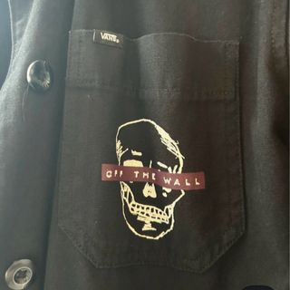 Chaqueta de la marca Vans en color negro y talla S. Presenta un diseño con un estampado de calavera en el bolsillo. - Cierre de botones. - Cuello camisero. - Bolsillo en el pecho.