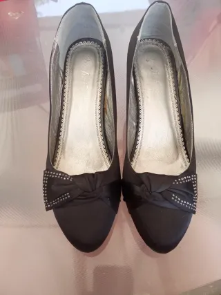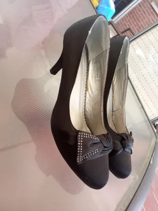 Zapatos de tacón negros con lazo y pedrería