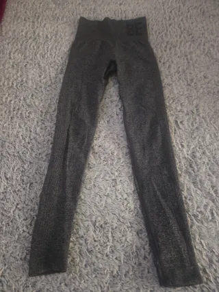 Mallas deportivas ajustadas de color gris. Presentan un diseño texturizado y elástico. - Cintura alta. - Tejido acanalado en las piernas. - Logo BE en la cintura.