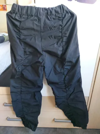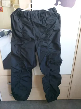 Pantalón fino con un diseño arrugado y moderno. - Cintura elástica. - Piernas ajustadas con detalle fruncido. - Bajo con elástico.