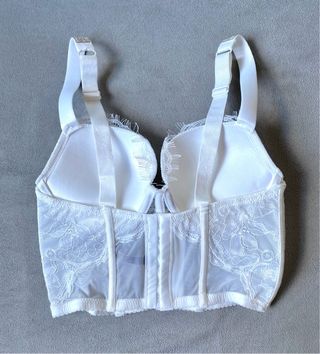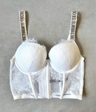 Corset / Sujetador / Corpiño de encaje para mujer. Efecto push up, tirantes logo con brillantes. Marca: Victoria’s Secret (VS) Talla Corset: - EU: 75B - USA: 34B - ESPAÑA: 90B - ITALIA: 2B Color: Blanco. Nuevo a estrenar! Incluye la bolsa de la marca, como en las fotos. Precio No negociable. Realizo envíos. ***Posibilidad de hacer un lote de productos en un mismo envío.***