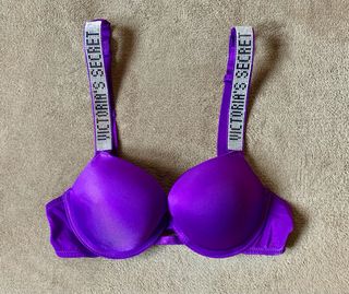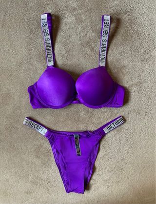Conjunto lenceria: Sujetador Push Up + Braga brasileña. Logo con brillantes. Marca: Victoria’s Secret (VS). Sujetador Talla: - EU: 75B - USA: 34B - ESPAÑA: 90B - ITALIA: 2B Braga brasileña: M (talla pequeño, sirve para talla S). Color: Morado. / Violeta. Nuevo a estrenar! Con la bolsa de la marca de las fotos. ***Posibilidad de hacer un lote de productos en un mismo envío.*** Tags: picardias, tanga, corset, corpiño, pijama, manta, liguero, bolso, top, liguero, bata, camisón, tarjetero, llavero, bolso, maleta viaje, cartera, monedero, neceser,