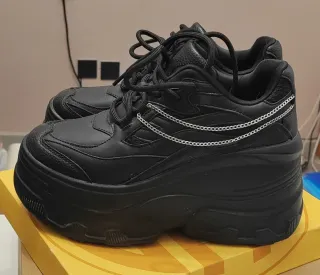 Zapatillas de plataforma con un diseño moderno y atrevido. - Detalle de cadenas plateadas. - Suela gruesa y robusta. - Cierre con cordones.