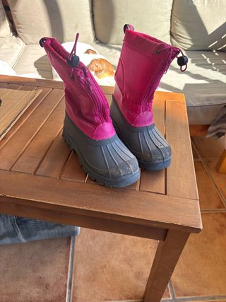 Botas de nieve en talla 33. Perfectas para mantener los pies calientes y secos en los días fríos. - Cierre de cremallera. - Cordón ajustable en la parte superior. - Suela de goma antideslizante.