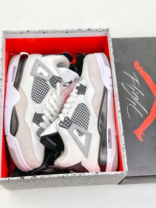 Zapatillas Jordan 4 Retro. - Diseño en color blanco y gris. - Talla 37.5.