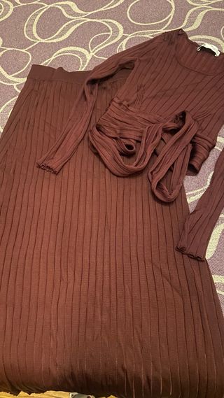 Conjunto de falda larga y top de manga larga con cinturón. - Tejido de canalé. - Falda de talle alto. - Top con cinturón para anudar.