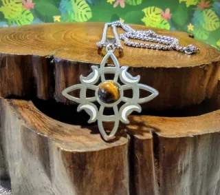 🖤🖤 OFERTA CANTIDAD EN JOYERÍA. 2 artículos 10% 3 artículos 15% 5 o + 20% Contactar para hacer lote con descuento 🖤🖤🖤 Colgante con diseño de triple luna y nudo celta, inspirado en la Wicca. - Estilo: collar de dos de la Luna triple con nudo celta Wicca. - Elaborado en acero. - Detalle central de piedra ojo de tigre. - Medidas: Cadena de 50 cm. Colgante 3,5 x 3,5 cm. - Hombre, mujer, unisex... ### anillo, pulsera, collar, pendientes, arete, brazalete, cadena, fashion, plata925, oro, diamantes, perlas, stainlesssteel, runas protección rockero gótico motorista Skull vikingo étnico wicca templario esotérico oro plata titanio