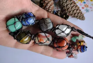🖤🖤 OFERTA CANTIDAD EN JOYERÍA. 2 artículos 10% 3 artículos 15% 5 o + artículos 20% Contactar para hacer lote con descuento 🖤🖤 Precioso colgante de siete chakras hecho a mano. - Ideal para equilibrar energías. - Elaborado con piedras naturales de diversos colores Rodado de Amatista, cuarzo cristal, lapislázuli, aventurina, ojo de tigre, cornalina y jaspe rojo. - Incluye siete piedras preciosas envueltos en cestillos de macrame. - Decoración del hogar, del coche, Reiki, yoga, meditación, equilibrio... -Mide unos 22 cm.