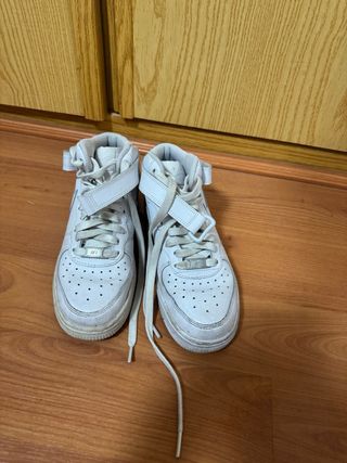 Zapatillas altas Nike Air Force 1 en color blanco. Un clásico para tu día a día. - Cierre con cordones y correa de velcro. - Detalle de perforaciones en la puntera. - Logo AF1 en la lengüeta.