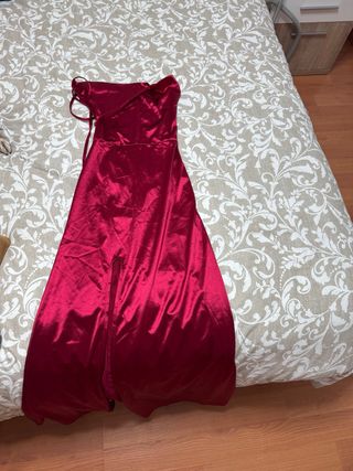 Vestido de fiesta granate satén con abertura