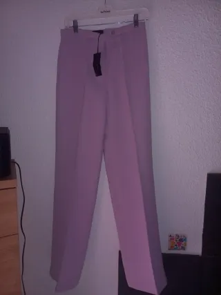 Pantalón de vestir en color lila cintura 36 cm aunque pone talla 40 - Corte recto. - Cierre de botón y cremallera.