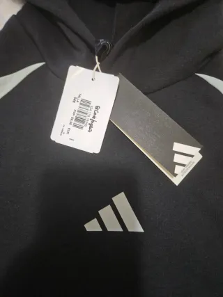 Sudadera con capucha de Adidas. - Diseño en color negro y gris. - Logo de Adidas en el pecho. Talla 048 para joven de 13-14 años. Esta sin estrenar, fue un regalo pero no me dieron el ticket regalo.