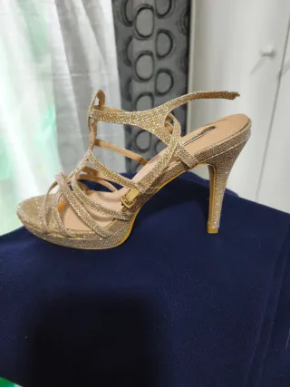 Sandalias doradas cuña