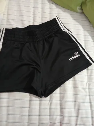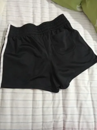Pantalones cortos deportivos negros con detalles de rayas blancas a los lados. - Cintura elástica. - Bolsillo trasero.
