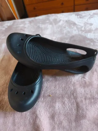 Zapatos tipo bailarina de la marca Crocs en color negro. - Diseño con orificios en la punta. - Suela con relieve. - Tirador en el talón.