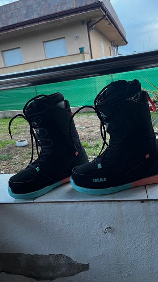 Botas de snowboard ThirtyTwo en color negro con detalles en turquesa y coral. - Cierre con cordones. - Diseño moderno y funcional. Solo un dia de uso