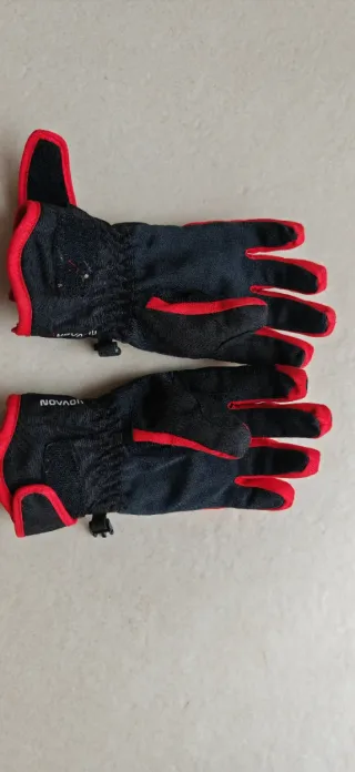 Guantes de nieve para niño. - Diseño en negro con detalles en rojo. - Cierre de velcro para un ajuste seguro. - Marca NOVADI.