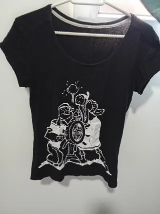 Camiseta negra con un divertido estampado de Popeye y sus amigos. - Dibujo blanco de los personajes. - Cuello redondo.