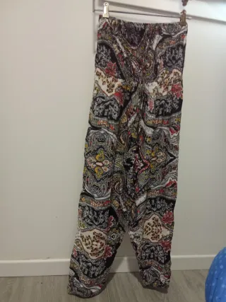 Pantalones largos con un llamativo estampado. - Diseño con cintura elástica. - Piernas amplias y cómodas. - Tejido ligero y fluido.