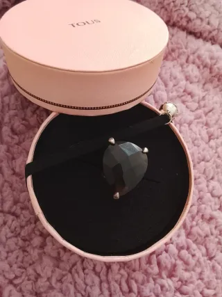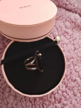 Elegante anillo Tous. - Diseño en forma de "corazón" - Piedra central de color marrón. - Presentado en su caja original Tous.