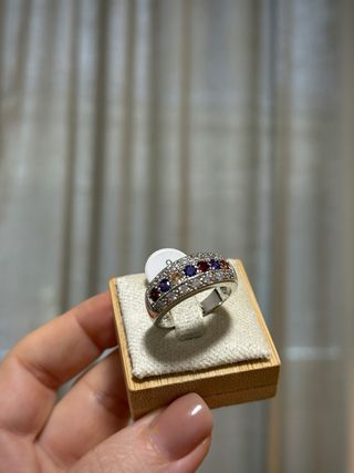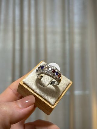 Elegante anillo con diseño brillante y piedras de colores (azul, rojo y cristal). Un modelo sofisticado que combina estilo clásico y moderno. ✨ Decorado con múltiples circonitas brillantes ✨ Piedras de colores que crean un efecto muy elegante ✨ Acabado plateado de alta calidad ✨ Diseño ancho y muy llamativo Perfecto para ocasiones especiales, regalo o para dar un toque de lujo a cualquier look. 📮 Envío: Solo envío por Wallapop (no entrega en mano) #anillo #anillomujer #joyeria #anilloelegante #circonitas #anillobrillante #joyeriamujer #regalomujer #accesorios #anillocolores