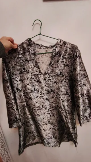 Blusa seda estampada mujer.Talla M. Blanca y negra