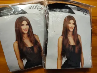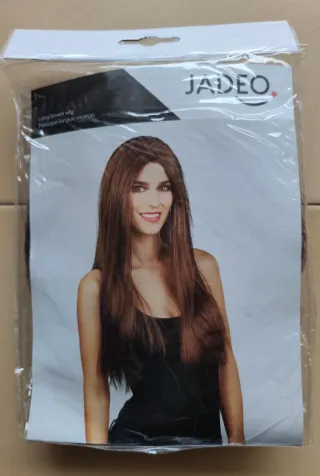 Peluca de cabello largo en tono castaño. Ideal para disfraces o eventos. Tengo dos, una en buen estado un la otra mas despeinada. Una 8€ la otra la regalo. Marca: JADEO Color: Castaño. Estilo: Largo y liso. Carnaval, despedida soltero o soltera...