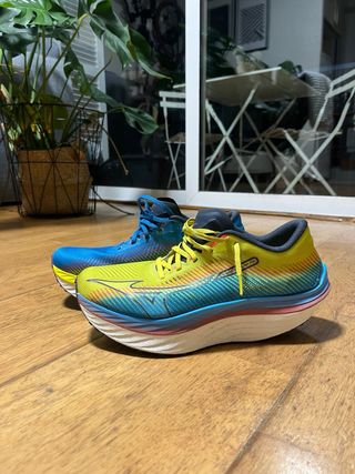 Vendo mis Mizuno Wave Rebellion Pro Carbono, zapatillas de running de competición. Están casi NUEVAS, sin roturas ni desperfectos. Suela y upper cuidados (ver fotos). Son zapatillas rápidas, con mucha respuesta, ideales para competición o entrenos de calidad (series, ritmos altos, 10K, media o maratón). Entrega en mano o envío por Wallapop. Cualquier duda, pregunta sin problema.