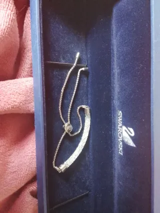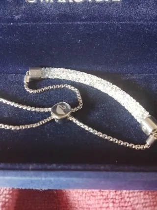 Elegante pulsera de la marca Swarovski. - Diseño ajustable. - Acabado plateado brillante.