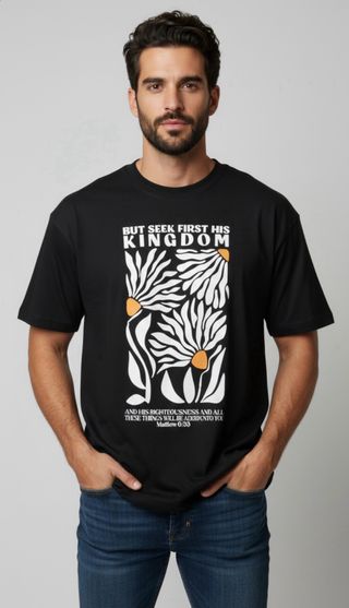 Camiseta de manga corta con un diseño gráfico llamativo en la parte frontal. - Estampado floral blanco y naranja. - Cuello redondo.