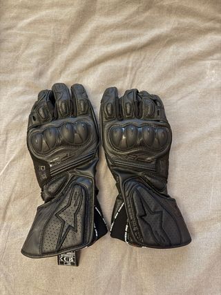 Guantes de moto Alpinestars SP-8 V3 en color negro y talla M Tiene 2 usos, y 2 usos reales, nada de en buen estado. Los vendo porque los compré para circuito y nunca acabé yendo. Están prácticamente para estrenar, originales. Color full black. Nuevos cuestan alrededor de 120€ - Diseño deportivo y protector. - Materiales de alta calidad para mayor durabilidad. - Cierre ajustable en la muñeca.