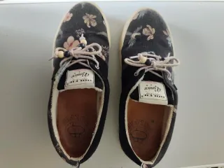 Poco uso. Las zapatillas están en buen estado. Han tenido uso pero aparte de que son unas zapatillas que llegan desgastadas de fábrica se encuentran bien. Los "rotos" y desgaste son controlados en la parte exterior. Envío caja y bolsa de tela para las zapatillas originales Tallan un poco grandes. Es una Talla 40. Yo calzo una 41 y estás me quedaban perfectas