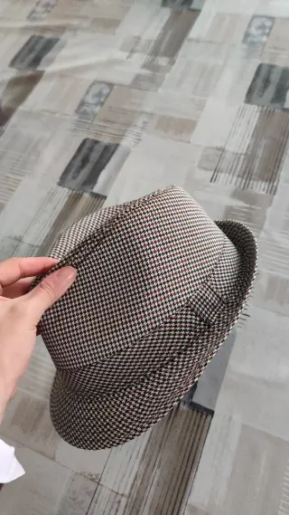 Sombrero con un diseño de cuadros clásico. - Patrón de pata de gallo. - Tonos marrones y multicolor.