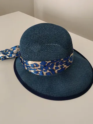 Sombrero de mujer azul con lazo estampado