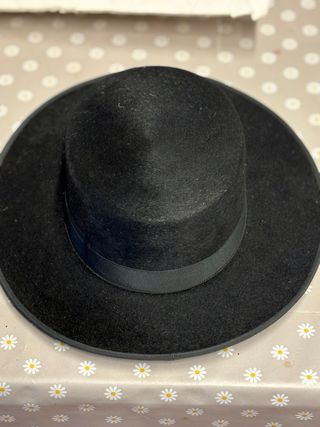 Sombrero estilo cordobés. - Ala ancha. - Copa cilíndrica. - Cinta decorativa negra. No se hace envío. Sólo venta en mano. Entrega en mano zona Fuengirola/Mijas